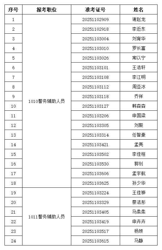 进入面试资格复审人员名单(详见附表),按照各招聘职位考生准考证号码由小到大的顺序排列。